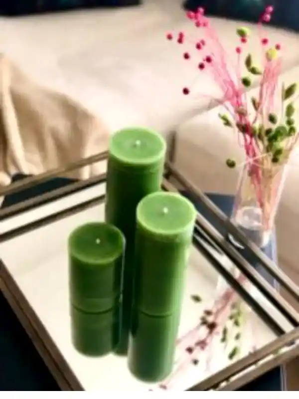 3'lü Set Silindir Yeşil Mum