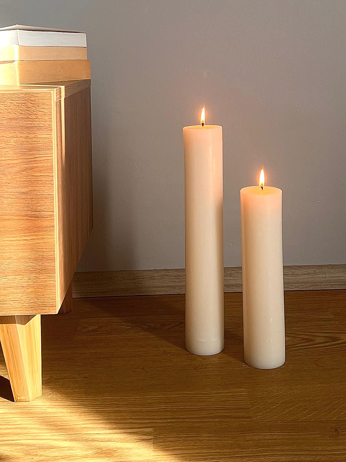 Atölyemizde el dökümü yöntemi ile sizler için hazırladığımız, sandal ağacı esansının rahatlatıcı ve dingin kokusuyla tamamladığımız silindir boy mumlarımız.